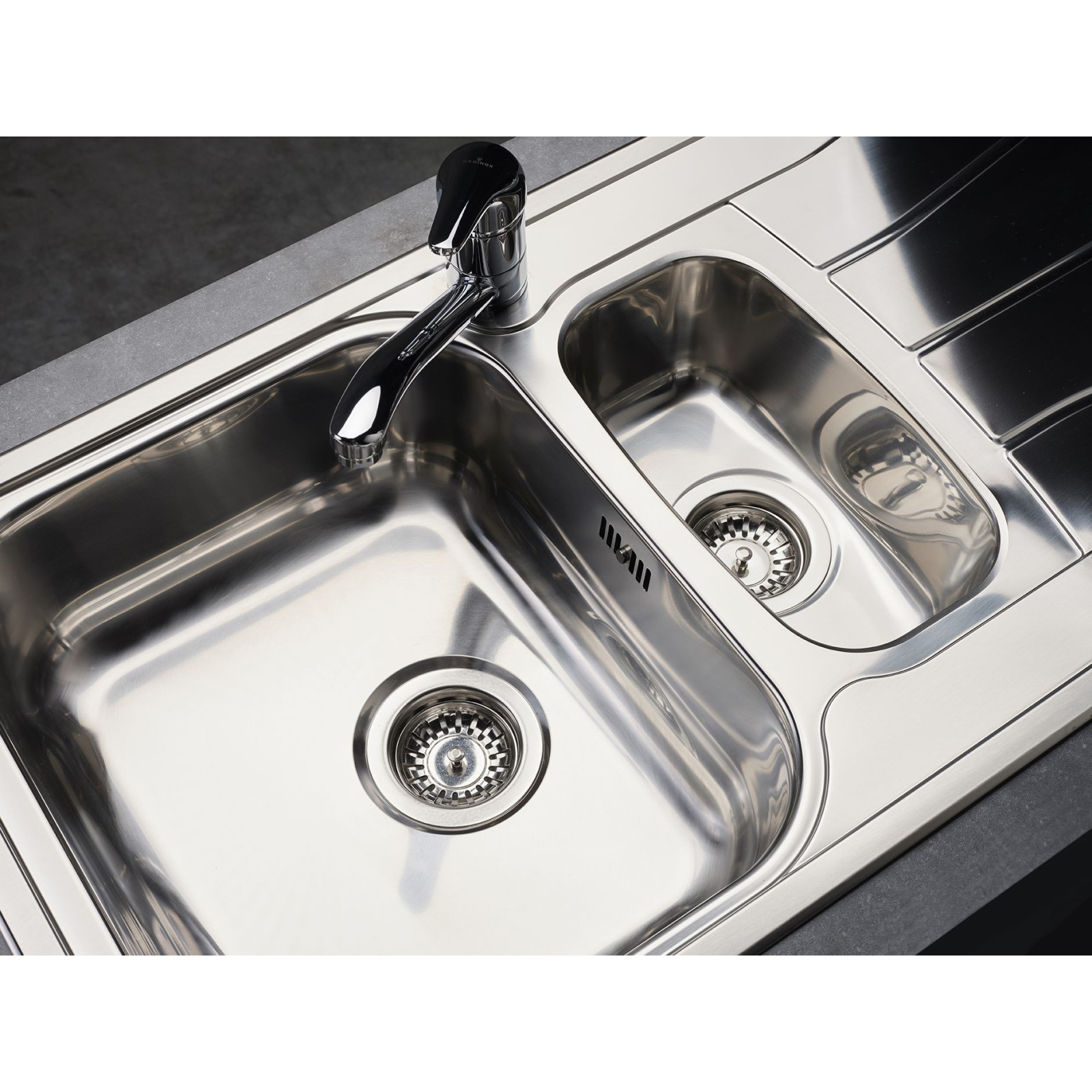 Chiuvetă de bucătărie Reginox din inox cu un bol mare unul mic. Posibilitatea de a vira la stânga sau la dreapta. Rezistența ridicată a materialului înseamnă că această achiziție vă va servi mult timp. Suprafața netedă și elastică nu va crea probleme inutile și stres deosebit pentru ca dvs. să aveți grijă de ea. Rezistenta la apa la fierbere este, fara indoiala, un plus important al produsului.