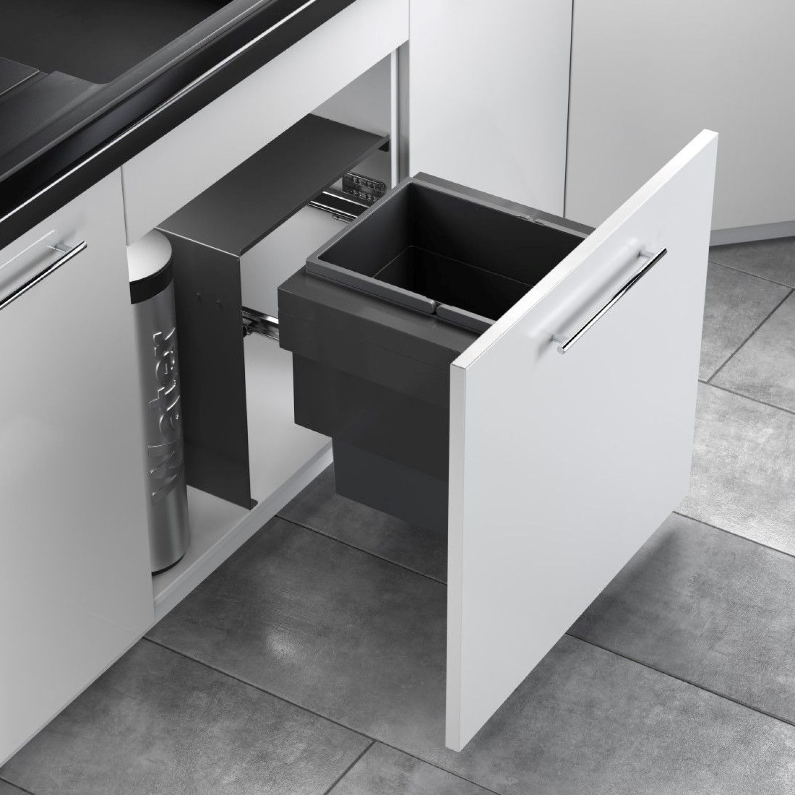 Cos de gunoi incorporat sub chiuveta Hailo AS Cargo Aqua 3608611, extensibil, cu o capacitate de 28 de litri, este soluția ideală pentru cei care apreciază confortul și curățenia. Este dotat cu glisiere Smoth Tec cu închidere silențioasă.