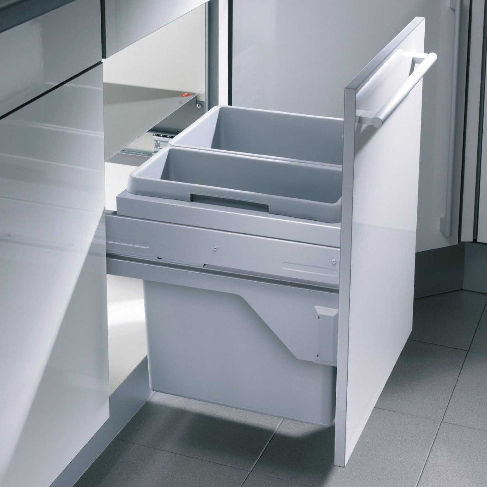 Cos de gunoi incorporat sub chiuveta Hailo Euro Cargo S 3610521 cu două recipiente de 30 si 19 litri, este soluția ideală pentru cei care apreciază confortul și curățenia. Este dotat cu ghidaje Smoth Tec cu închidere silențioasă. Lățimea minimă a dulapului: 500 mm.