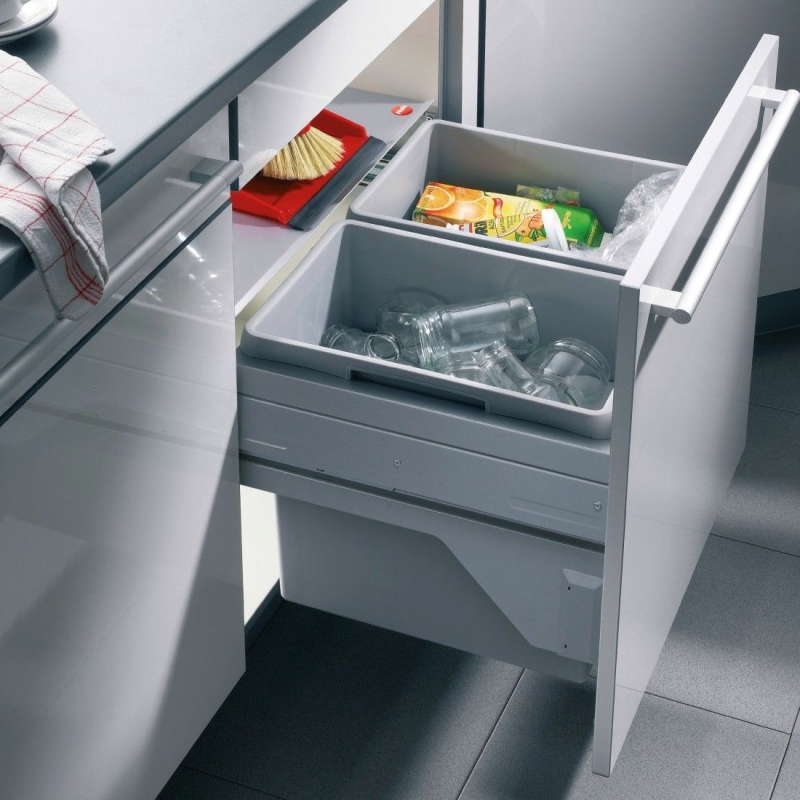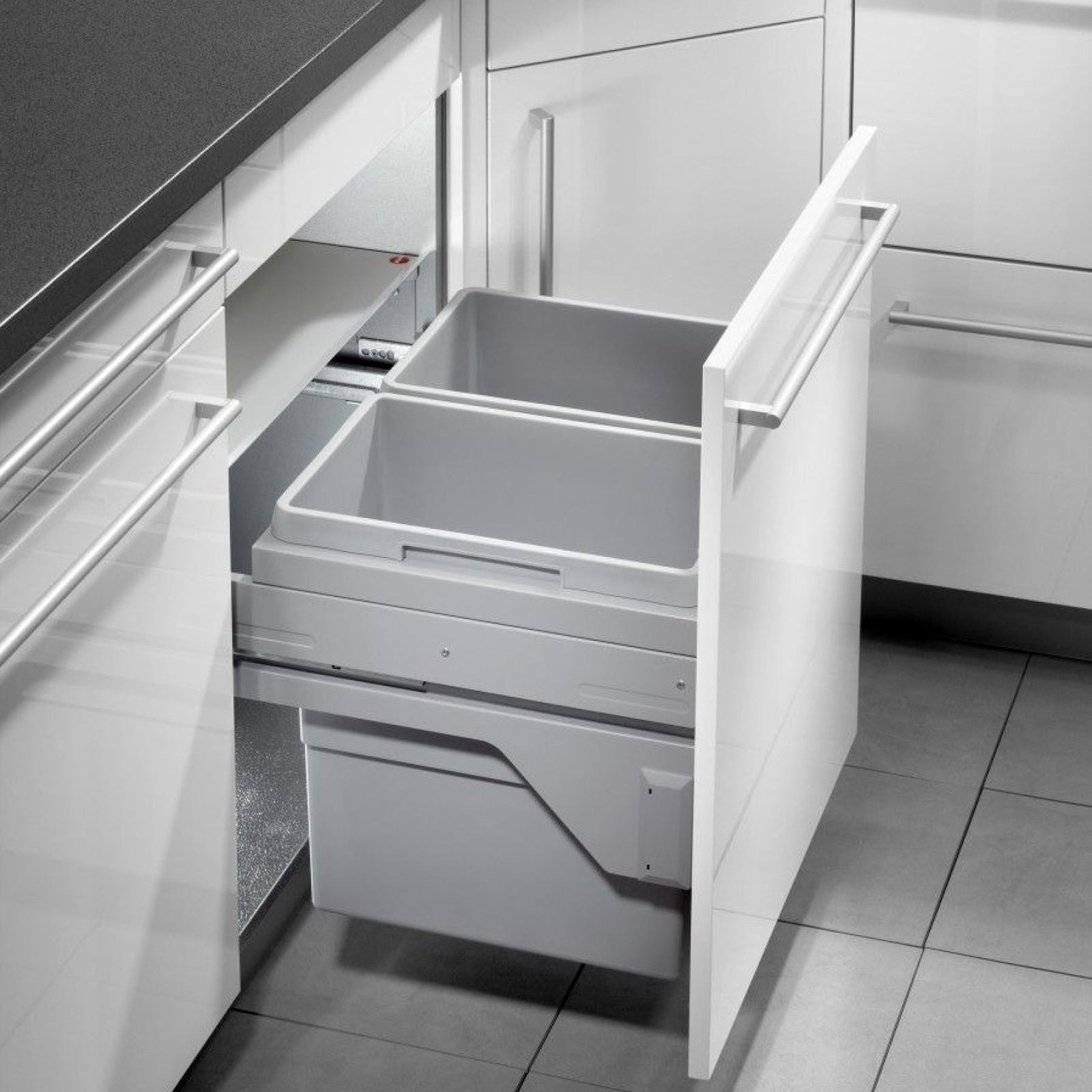 Cos de gunoi incorporat sub chiuveta Hailo Euro Cargo S 3610621 cu două recipiente de 30 litri, este soluția ideală pentru cei care apreciază confortul și curățenia. Este dotat cu ghidaje Smoth Tec cu închidere silențioasă. Lățimea minimă a dulapului: 600 mm.
