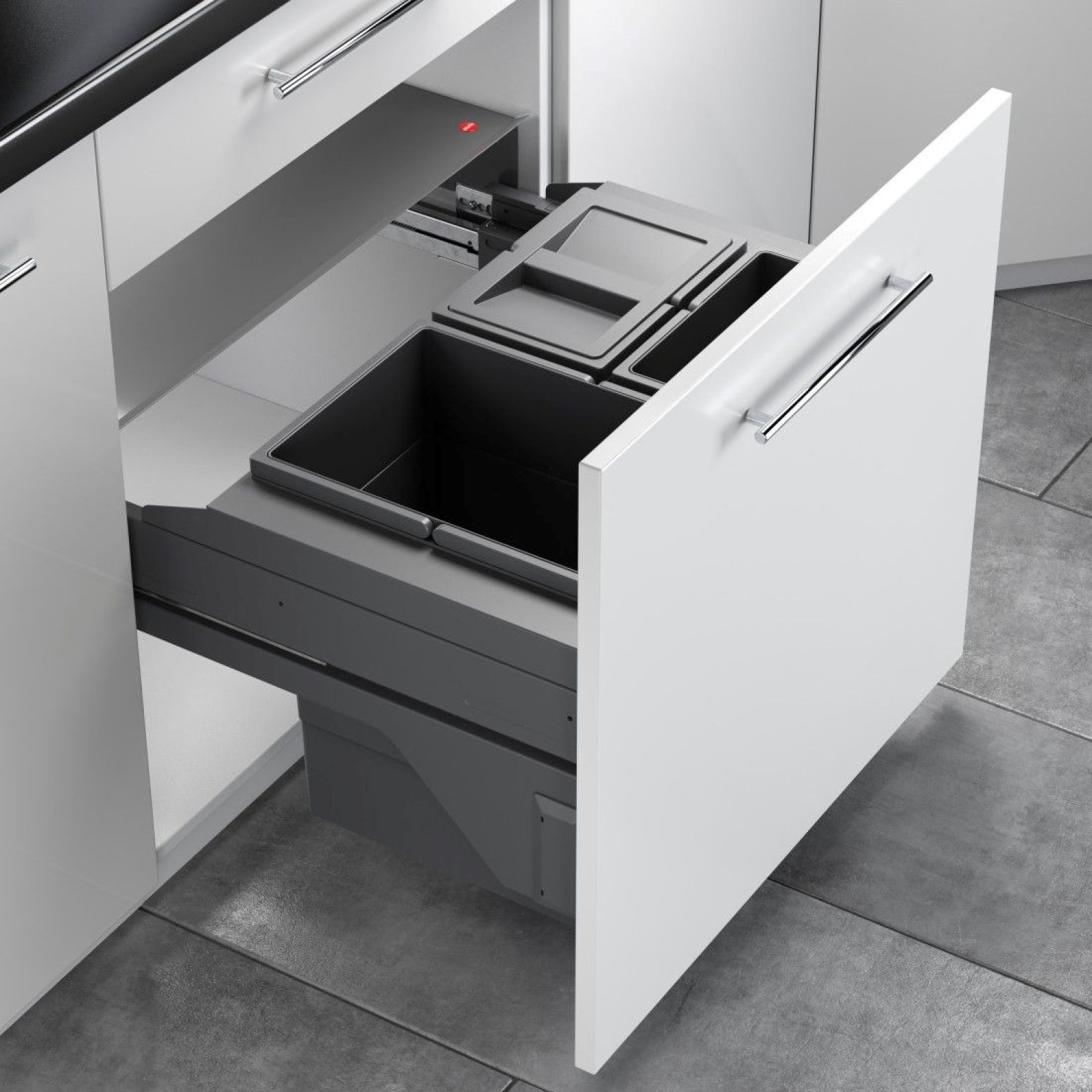 Cos de gunoi incorporat sub chiuveta Hailo Cargo Basic 3609501 are o capacitate de 40 de litri (1 x 20 + 2 x 10), fiind soluția ideală pentru cei care apreciază confortul și curățenia. Este dotată cu șine Smoth Tec cu închidere silențioasă.