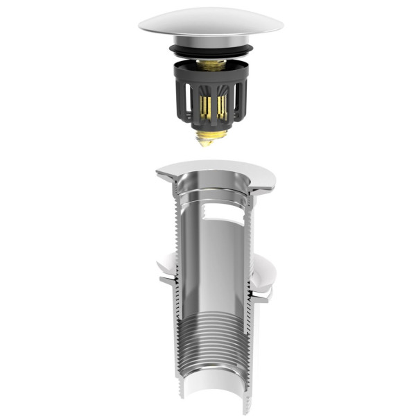 Регулируемый донный клапан, подходит для классических и накладных раковин с переливом.