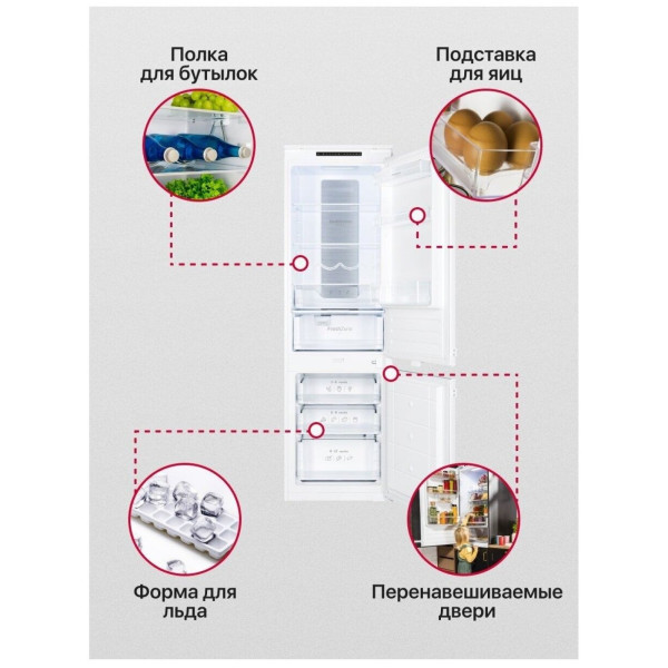 Вы можете выбирать, в какую сторону будет открываться дверь холодильника. Особенно удобным такое преимущество будет для малогабаритных кухонь.