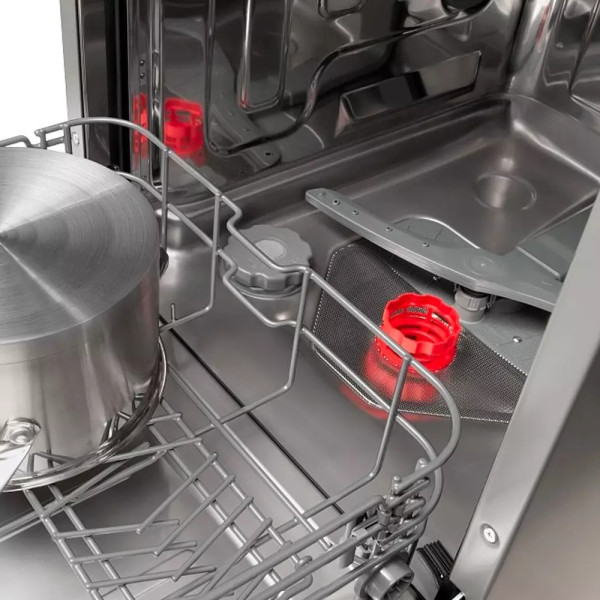 Pentru o îngrijire delicată a vaselor și rezultate îmbunătățite ale curățării, sarea este distribuită automat în funcție de duritatea apei. Dacă nu există suficientă sare, senzorii electronici o detectează imediat.